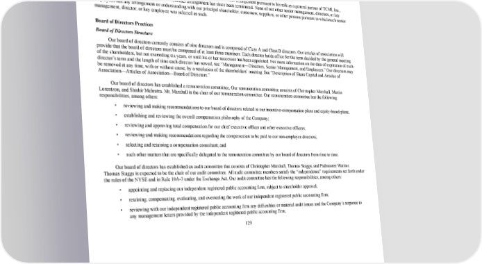 136/264 Family Relationships There are no family relationships between any of the directors. There are no family relationships between any director and any of the senior management of our Company. Arrangements or Understandings Christopher Marshall was elected as a director pursuant to a shareholder arrangement pursuant to his role as a general partner of TCMI, Inc., which manages the TCV funds. Such shareholder arrangement has since been terminated. None of our other senior management, directors, or key employees has any arrangement or understanding with our principal shareholder, customers, suppliers, or other persons pursuant to which such senior management, director, or key employee was selected as such. Board of Directors Practices Board of Directors Structure Our board of directors currently consists of nine directors and is composed of Class A and Class B directors. Our articles of association will provide that the board of directors must be composed of at least three members. Each director holds office for the term decided by the general meeting of the shareholders, but not exceeding six years, or until his or her successor has been appointed. For more information on the date of expiration of each director’s term and the length of time each director has served, see “Management—Directors, Senior Management, and Employees.” Our directors may be removed at any time, with or without cause, by a resolution of the shareholders’ meeting. See “Description of Share Capital and Articles of Association—Articles of Association—Board of Directors.” Our board of directors has established a remuneration committee. Our remuneration committee consists of Christopher Marshall, Martin Lorentzon, and Shishir Mehrotra. Mr. Marshall is the chair of our remuneration committee. Our remuneration committee has the following responsibilities, among others: • reviewing and making recommendations to our board of directors related to our incentivecompensation plans and equitybased plans; • establishing and reviewing the overall compensation philosophy of the Company; • reviewing and approving total compensation for our chief executive officer and other executive officers; • reviewing and making recommendations regarding the compensation to be paid to our nonemployee directors; • selecting and retaining a compensation consultant; and • such other matters that are specifically delegated to the remuneration committee by our board of directors from time to time. Our board of directors has established an audit committee that consists of Christopher Marshall, Thomas Staggs, and Padmasree Warrior. Thomas Staggs is expected to be the chair of our audit committee. All audit committee members satisfy the “independence” requirements set forth under the rules of the NYSE and in Rule 10A3 under the Exchange Act. Our audit committee has the following responsibilities, among others: • appointing and replacing our independent registered public accounting firm, subject to shareholder approval; • retaining, compensating, evaluating, and overseeing the work of our independent registered public accounting firm; • reviewing with our independent registered public accounting firm any difficulties or material audit issues and the Company’s response to any management letters provided by the independent registered public accounting firm; 129