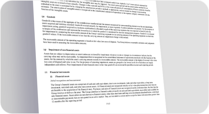 206/264 Notes to the 2017 consolidated financial statements The Group recognizes internal development costs as intangible assets only when the following criteria are met: the technical feasibility of completing the intangible asset exists, there is an intent to complete and an ability to use or sell the intangible asset, the intangible asset will generate probable future economic benefits, there are adequate resources available to complete the development and to use or sell the intangible asset, and there is the ability to reliably measure the expenditure attributable to the intangible asset during its development. Intangible assets with finite lives are amortized on a straightline basis over their estimated useful lives, typically 2 to 5 years and are assessed for impairment whenever there is an indication that the intangible asset may be impaired. The amortization period and the amortization method for an intangible asset are reviewed at least annually. Changes in the expected useful life or the expected pattern of consumption of future economic benefits embodied in the asset is accounted for by changing the amortization period or method, as appropriate, and are treated as changes in accounting estimates. The amortization of intangible assets is recognized in the consolidated statement of operations in the expense category consistent with the function of the intangible assets. (p) Goodwill Goodwill is the excess of the aggregate of the consideration transferred and the amount recognized for noncontrolling interest over the net identifiable assets acquired and liabilities assumed. Goodwill is tested annually for impairment, or more regularly if certain indicators are present. For the purpose of impairment testing, goodwill acquired in a business combination is allocated to each of the operating segments that are expected to benefit from the synergies of the combination and represent the lowest level at which the goodwill is monitored for internal management purposes. Goodwill is evaluated for impairment by comparing the recoverable amount of the Group’s operating segments to the carrying amount of the operating segments to which the goodwill relates. If the recoverable amount is less than the carrying amount an impairment charge is determined. The recoverable amount of the operating segments is based on fair value less costs of disposal. The Group believes reasonable estimates and judgments have been used in assessing the recoverable amounts. (q) Impairment of nonfinancial assets Assets that are subject to depreciation or amortization are reviewed for impairment whenever events or changes in circumstances indicate that the carrying value may not be recoverable. An impairment loss is recognized in the consolidated statement of operations consistent with the function of the assets, for the amount by which the asset’s carrying amount exceeds its recoverable amount. The recoverable amount is the higher of an asset’s fair value less costs of disposal and value in use. For the purposes of assessing impairment, assets are grouped at the lowest levels for which there are largely independent cash inflows. Prior impairments of nonfinancial assets (other than goodwill) are reviewed for possible reversal each reporting period. (r) Financial instruments (i) Financial assets Initial recognition and measurement The Group’s financial assets are comprised of cash and cash equivalents, short term investments, trade and other receivables, a long term investment, restricted cash, and other noncurrent assets. All financial assets are recognized initially at fair value plus transaction costs that are attributable to the acquisition of the financial asset. Purchases and sales of financial assets are recognized on the settlement date; the date that the Group receives or delivers the asset. The Group classifies its financial assets primarily as cash and cash equivalents, receivables and available for sale financial assets. Receivables are nonderivative financial assets, other than short term and long term investments described below, with fixed or determinable payments that are not quoted in an active market. They are included in current assets except for those with maturities greater than 12 months after the reporting period. F13