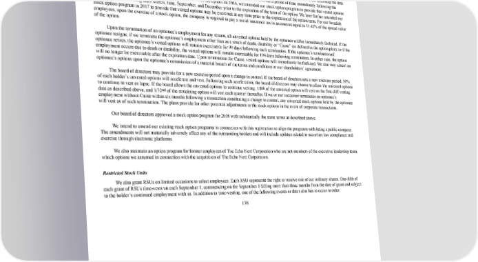 145/264 leadership team, also are eligible for yearly stock option grants. Each stock option represents the right to purchase one of our ordinary shares. Pursuant to the recent stock option programs, each participant is granted a stock option at a specified exercise price. Since January 1, 2016, the exercise prices have been set at fair market value. Of each grant, 3/16ths of the total number of options granted vests on the first of any of March 1, June 1, September 1, or December 1 falling more than three months from the date of grant (except for grants made prior to 2017 in Australia for which 5/16 vests on the first of March 1, June 1, September 1, or December 1 after 12 months from the date of grant), and thereafter 1/16 vests on each March 1, June 1, September 1, and December 1 thereafter, subject to continued employment. The options expire on March 31 of the fifth year following the date of grant. Initially, vested options were only exercisable annually during a 30day exercise window, for a period of time immediately following the optionee’s termination and upon the expiration of the term of the option. In 2016, we amended our stock option program to provide that vested options could be exercised during each March, June, September, and December prior to the expiration of the term of the option. We later further amended our stock option program in 2017 to provide that vested options may be exercised at any time prior to the expiration of the option term. For our Swedish employees, upon the exercise of a stock option, the company is required to pay a social insurance tax in an amount equal to 31.42% of the spread value of the option. Upon the termination of an optionee’s employment for any reason, all unvested options held by the optionee will be immediately forfeited. If the optionee resigns; if we terminate the optionee’s employment other than as a result of death, disability or “Cause” (as defined in the option plan); or if the optionee retires, the optionee’s vested options will remain exercisable for 90 days following such termination. If the optionee’s termination of employment occurs due to death or disability, the vested options will remain exercisable for 194 days following termination. In either case, the option will no longer be exercisable after the expiration date. Upon termination for Cause, vested options will immediately be forfeited. We also may cancel an optionee’s options upon the optionee’s commission of a material breach of the terms and conditions or our shareholders’ agreement. The board of directors may provide for a new exercise period upon a change in control. If the board of directors sets a new exercise period, 50% of each holder’s unvested options will accelerate and vest. Following such acceleration, the board of directors may choose to allow the unvested options to continue to vest or lapse. If the board allows the unvested options to continue vesting, 1/8 th of the unvested option will vest on the first cliff vesting date as described above, and 1/32 nd of the remaining option will vest each quarter thereafter. If we or our successor terminates an optionee’s employment without Cause within six months following a transaction constituting a change in control, any unvested stock options held by the optionee will vest as of such termination. The plans provide for other potential adjustments to the stock options in the event of corporate transactions. Our board of directors approved a stock option program for 2018 with substantially the same terms as described above. We intend to amend our existing stock option programs in connection with this registration to align the programs with being a public company. The amendments will not materially adversely affect any of the outstanding holders and will include updates related to securities law compliance and exercise through electronic platforms. We also maintain an option program for former employees of The Echo Nest Corporation who are not members of the executive leadership team, which options we assumed in connection with the acquisition of The Echo Nest Corporation. Restricted Stock Units We also grant RSUs on limited occasions to select employees. Each RSU represents the right to receive one of our ordinary shares. Onefifth of each grant of RSUs timevests on each September 1, commencing on the September 1 falling more than three months from the date of grant and subject to the holder’s continued employment with us. In addition to timevesting, one of the following events or dates also has to occur in order 138