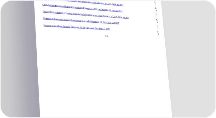 194/264 INDEX TO CONSOLIDATED FINANCIAL STATEMENTS Page Report of Independent Registered Public Accounting Firm F 2 Consolidated statement of operations for the years ended December 31, 2015, 2016, and 2017 F 3 Consolidated statement of comprehensive loss for the years ended December 31, 2015, 2016, and 2017 F 4 Consolidated statement of financial position as of January 1, 2016 and December 31, 2016 and 2017 F 5 Consolidated statement of changes in equity/(deficit) for the years ended December 31, 2015, 2016, and 2017 F 6 Consolidated statement of cash flows for the years ended December 31, 2015, 2016, and 2017 F 7 Notes to consolidated financial statements for the year ended December 31, 2017 F 8 F1
