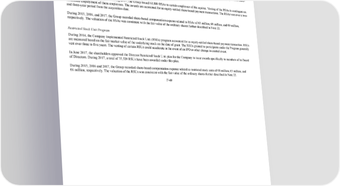 233/264 Notes to the 2017 consolidated financial statements Restricted Stock Awards In connection with the Group’s acquisition of Echo Nest in March of 2014, the Group issued 158,720 restricted stock awards (RSAs) to certain Echo Nest employees. Vesting of the RSAs is contingent on continued employment of these employees. The awards are accounted for as equitysettled share based payment transactions. The RSAs vested annually over a twoyear period from the acquisition date. In connection with an acquisition during 2017, the Group issued 61,880 RSAs to certain employees of the aquiree. Vesting of the RSAs is contingent on continued employment of these employees. The awards are accounted for as equitysettled sharebased payment transactions. The RSAs vest over a two and threeyear period from the acquisition date. During 2015, 2016, and 2017, the Group recorded sharebased compensation expense related to RSAs of €1 million, €0 million, and €0 million, respectively. The valuation of the RSAs was consistent with the fair value of the ordinary shares further described in Note 22. Restricted Stock Unit Program During 2014, the Company implemented Restricted Stock Unit (RSUs) program accounted for as equitysettled sharebased payment transaction. RSUs are measured based on the fair market value of the underlying stock on the date of grant. The RSUs granted to participants under the Program generally vest over three to five years. The vesting of certain RSUs could accelerate in the event of an IPO or other change in control event. In June 2017, the shareholders approved the Director Restricted Stock Unit plan for the Company to issue awards specifically to members of its Board of Directors. During 2017, a total of 35,520 RSUs have been awarded under this plan. During 2015, 2016 and 2017, the Group recorded sharebased compensation expense related to restricted stock units of €8 million, €5 million, and €6 million, respectively. The valuation of the RSUs was consistent with the fair value of the ordinary shares further described in Note 22. F40
